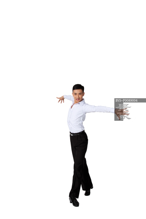 图片标题: 棚拍年轻男演员跳国标舞
