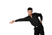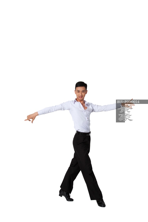 图片标题: 棚拍年轻男演员跳国标舞
