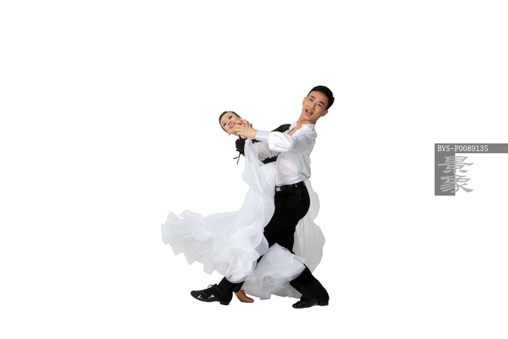 图片标题: 棚拍一对年轻演员跳国标舞