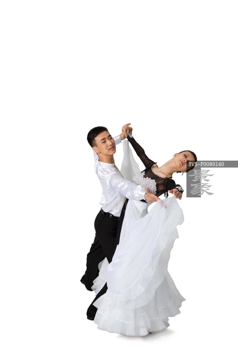图片标题: 棚拍一对年轻演员跳国标舞