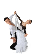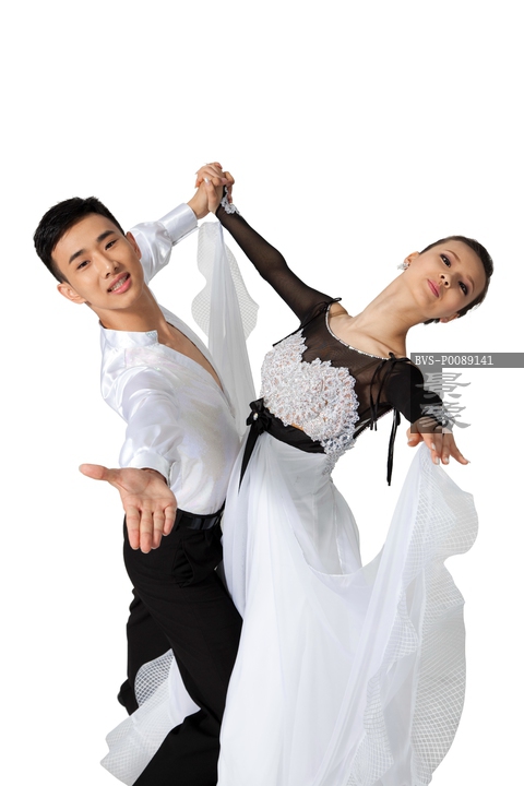 图片标题: 棚拍一对年轻演员跳国标舞