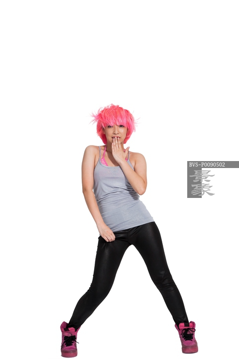 图片标题: 棚拍年轻女人跳街舞