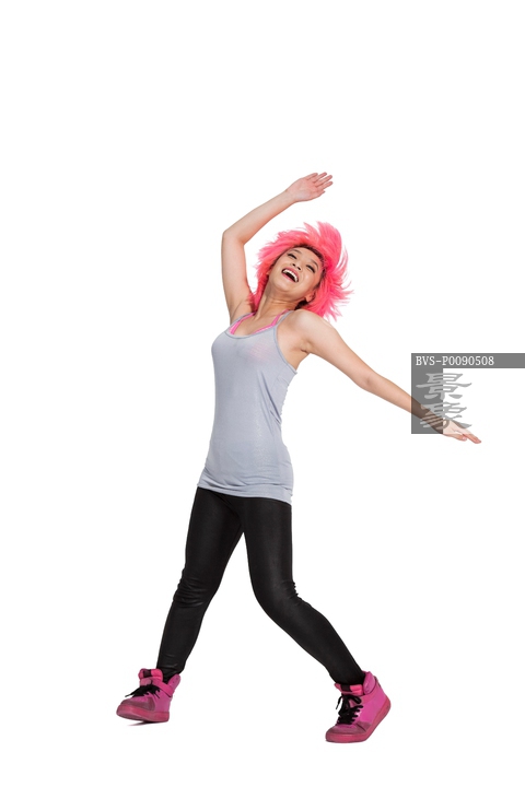 图片标题: 棚拍年轻女人跳街舞