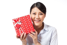 图片标题: 棚拍年轻商务女士抱着礼物盒