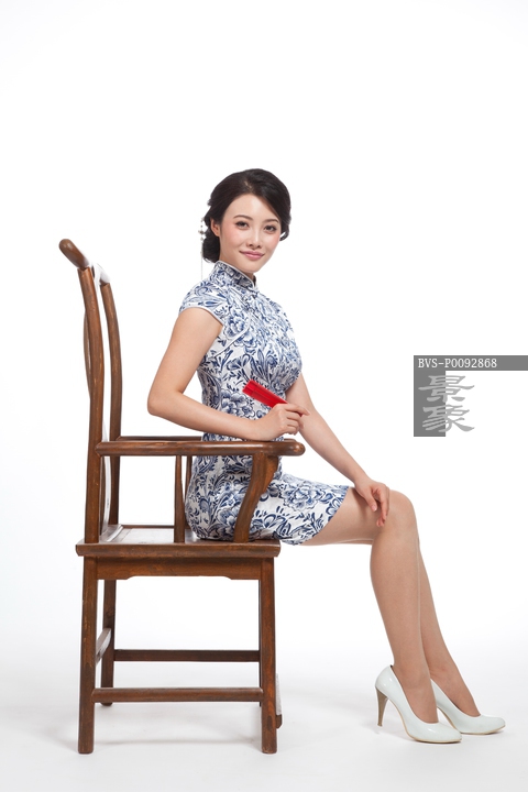 图片标题:     棚拍身穿旗袍的年轻女人坐中式椅