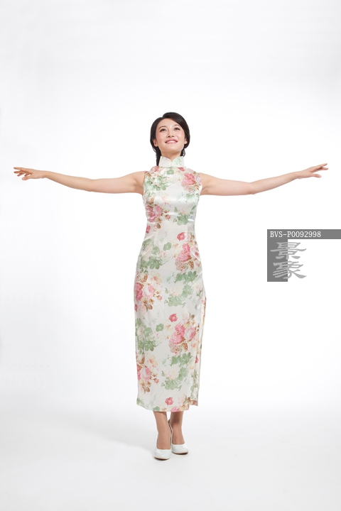 图片标题:     棚拍身穿旗袍的年轻女人