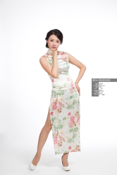 图片标题: 棚拍身穿旗袍的年轻女人