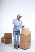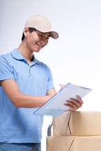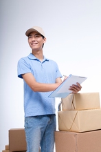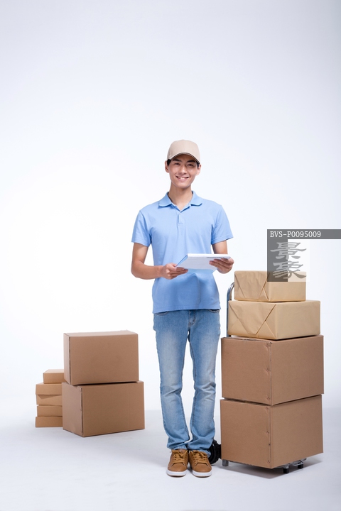 图片标题:     棚拍工作装年轻男快递员