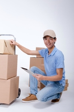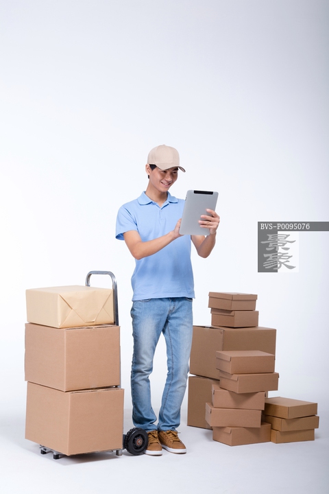 图片标题: 棚拍工作装年轻男快递员