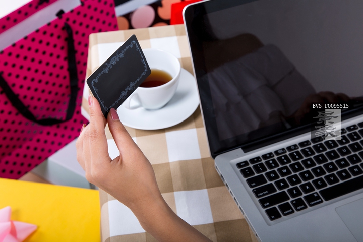 图片标题:     特写银行卡和笔记本电脑