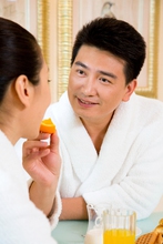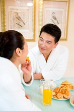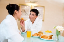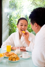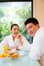图片标题: 夫妻在餐厅吃早餐