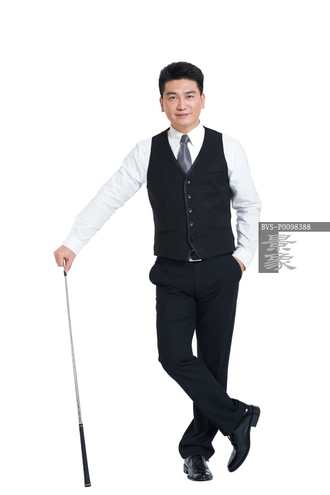 图片标题: 棚拍中年商务男士打高尔夫