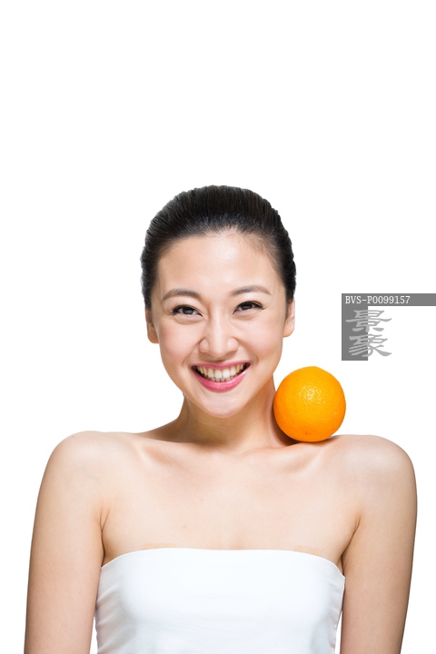 图片标题: 棚拍年轻女人和水果
