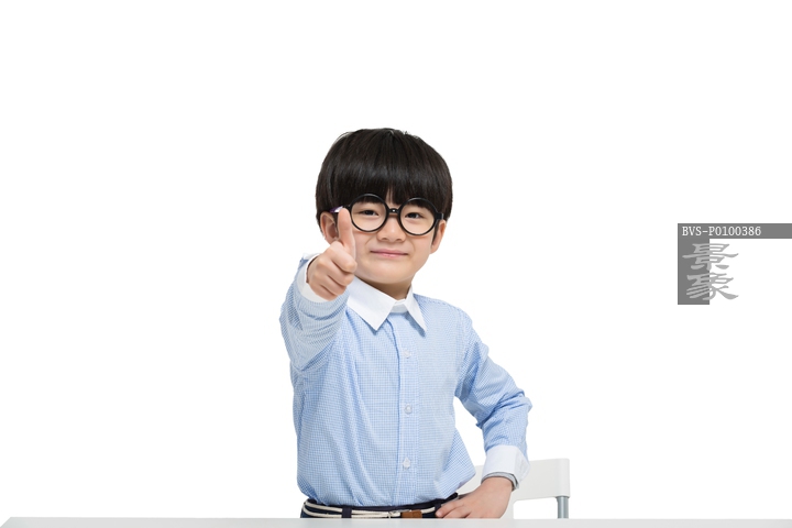 图片标题: 快乐的小男孩竖起大拇指