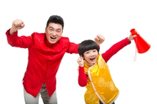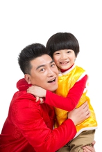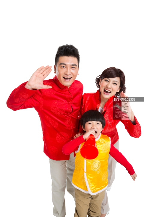 图片标题:     棚拍中国新年快乐的唐装一家三口