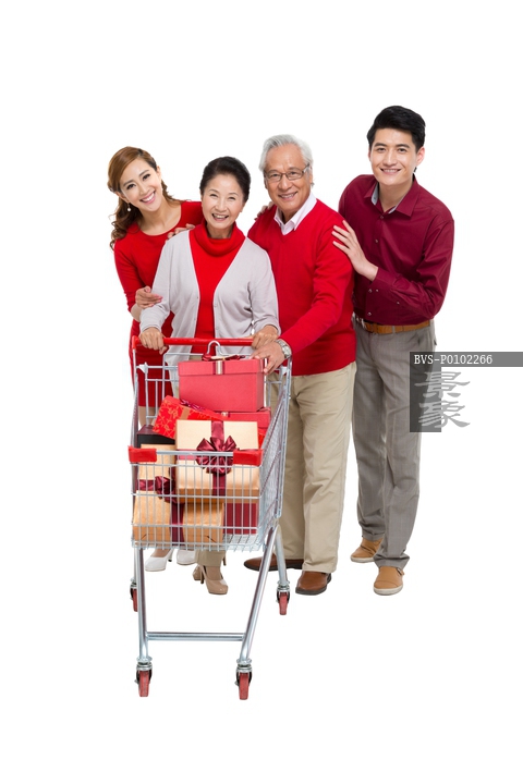 图片标题: 棚拍节日家庭和购物车