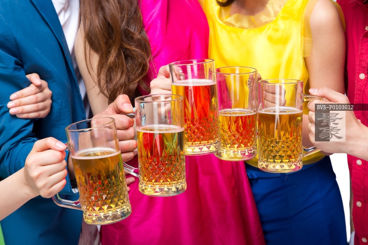 图片标题: 棚拍时尚活力年轻人聚会喝啤酒