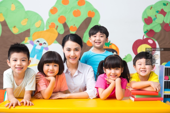 图片标题:     幼儿园老师和儿童在一起微笑