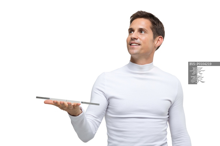 图片标题: 棚拍高科技研究人员与全息图