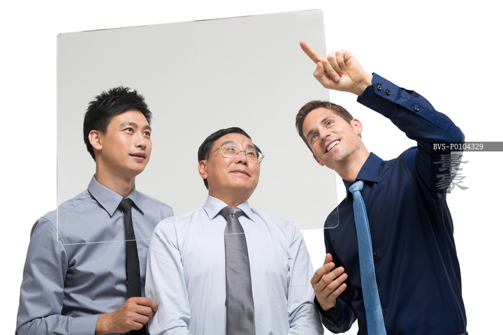 图片标题: 棚拍科技商务男士使用触摸屏