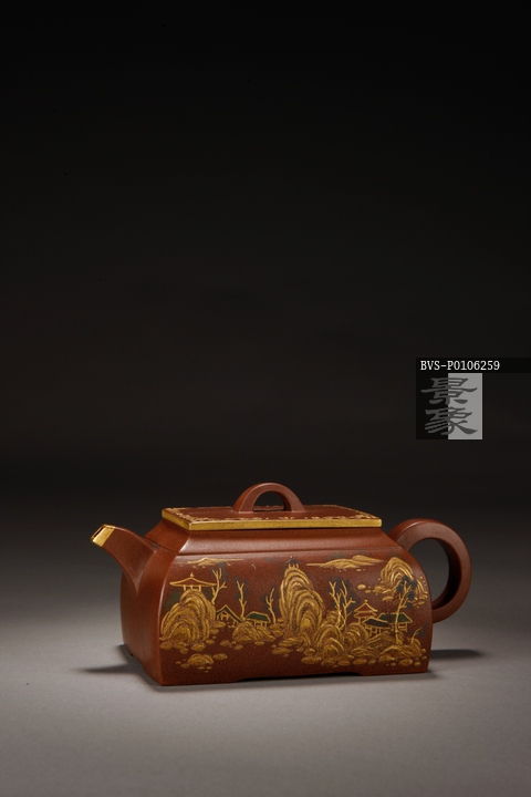 图片标题: 山水纹紫砂方壶