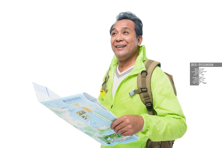 图片标题: 快乐的中老年人拿着地图