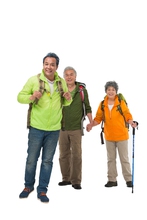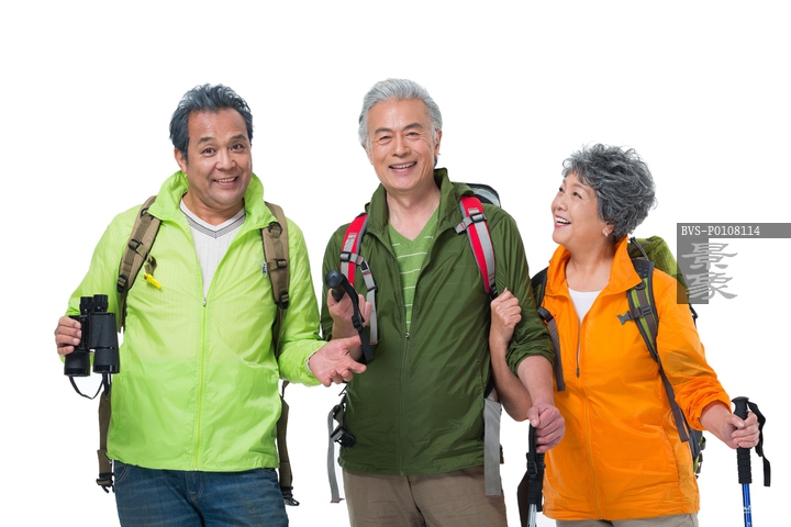 图片标题: 快乐的老年人登山旅行