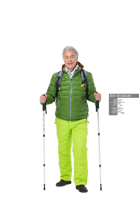 图片标题: 老年男人冬季登山旅行