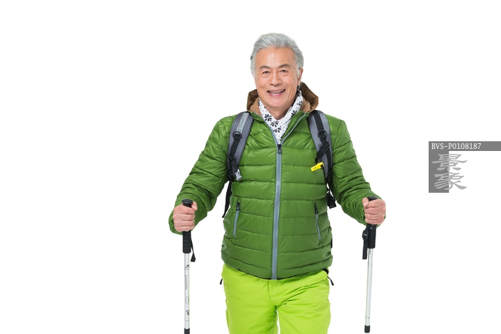 图片标题: 老年男人冬季登山旅行