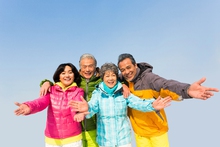 图片标题:     快乐的老年人冬季户外旅行