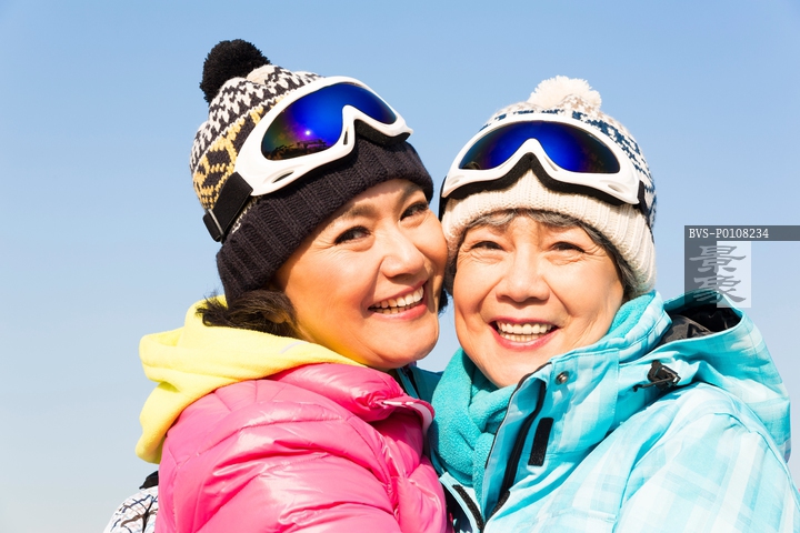 图片标题: 两个快乐的老年人冬季游玩