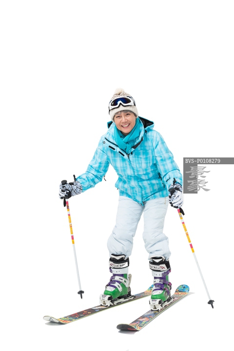 图片标题: 快乐的老年人冬季滑雪
