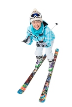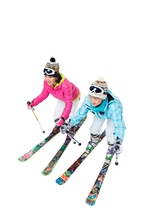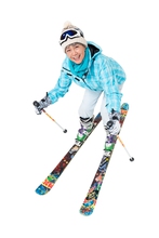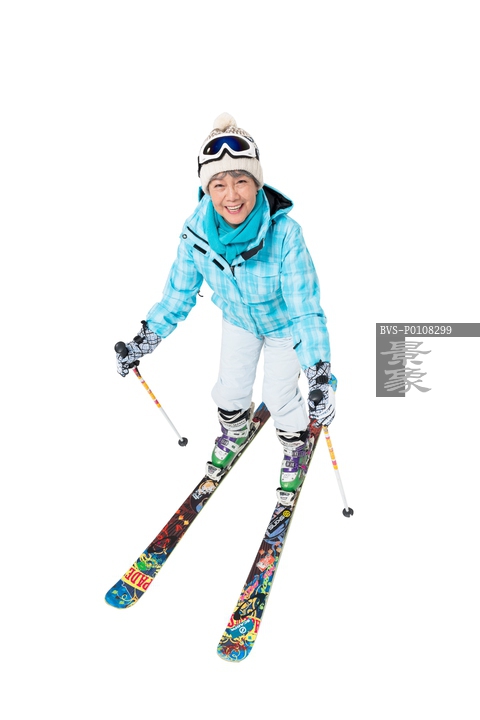 图片标题: 快乐的老年人冬季滑雪