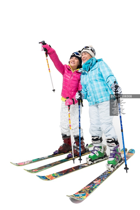 图片标题: 快乐的老年人冬季滑雪