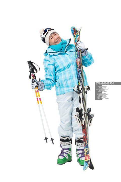 图片标题: 快乐的老年人冬季滑雪
