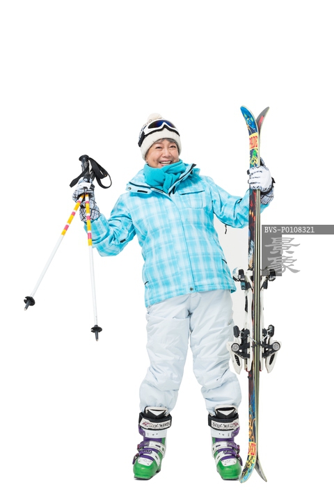 图片标题: 快乐的老年人冬季滑雪