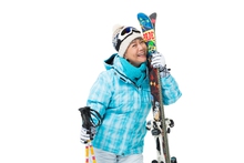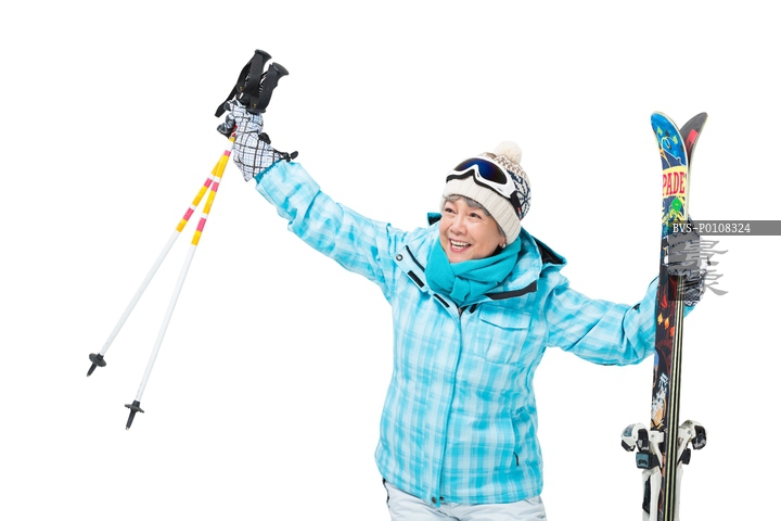图片标题: 快乐的老年人冬季滑雪