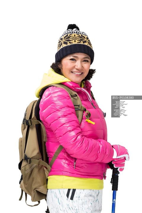 图片标题: 中老年女人冬季登山旅行