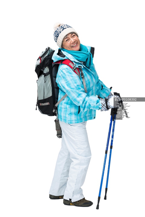 图片标题:     老年女人冬季登山旅行