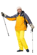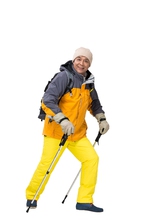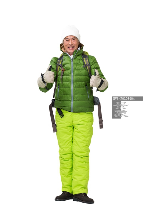 图片标题: 老年男人冬季登山旅行