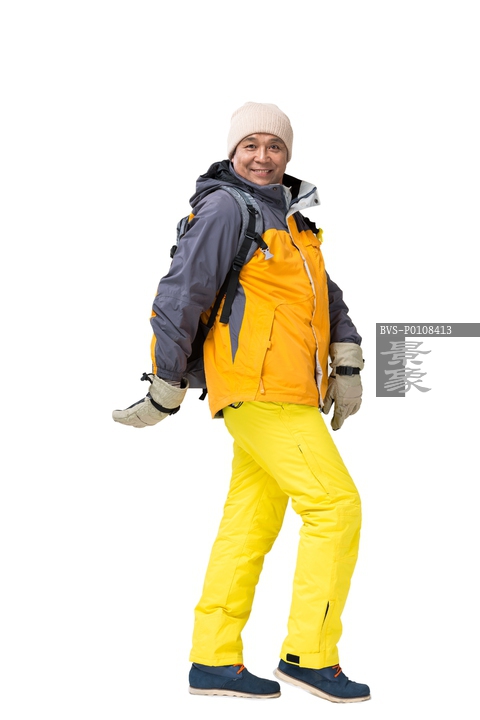 图片标题: 中老年男人冬季登山旅行