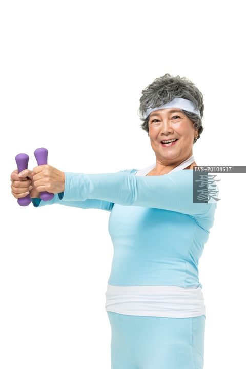 图片标题: 举哑铃的老年人