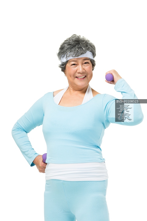 图片标题: 举哑铃的老年人