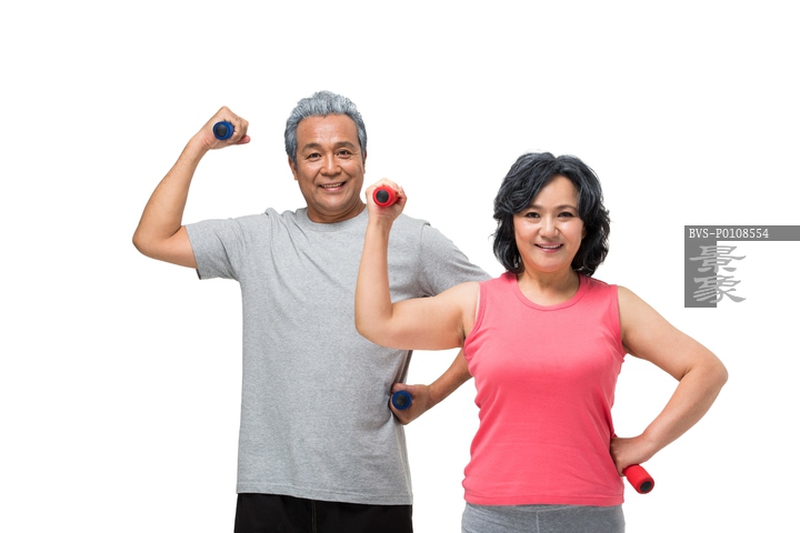 图片标题: 中老年夫妇举哑铃