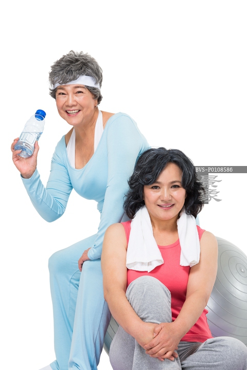 图片标题:     老年女人与健身球
