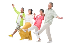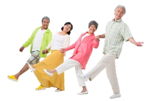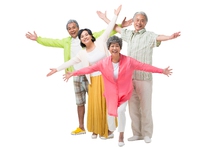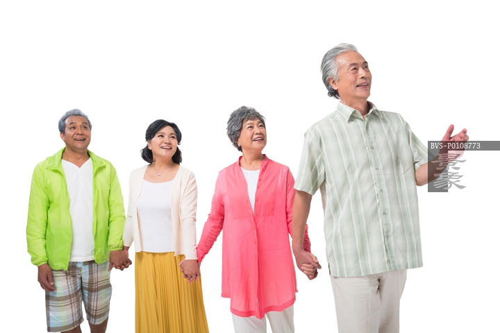 图片标题: 快乐的老年人牵手散步