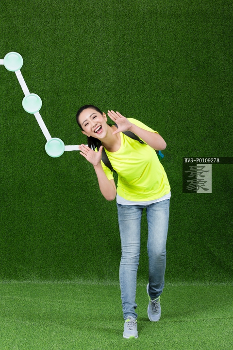 图片标题: 草地创意年轻女性户外旅游