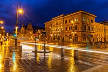 图片标题: 在布达佩斯,匈牙利著名的链桥 - 夜间拍摄。