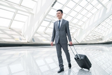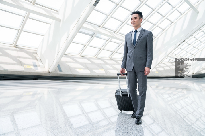 图片标题: 商务男士在机场,提着行李