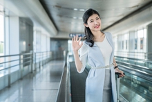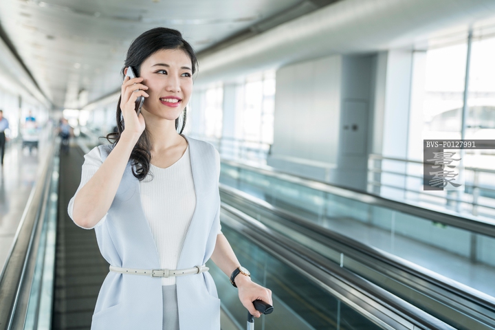 图片标题:     年轻商务女士在机场打电话